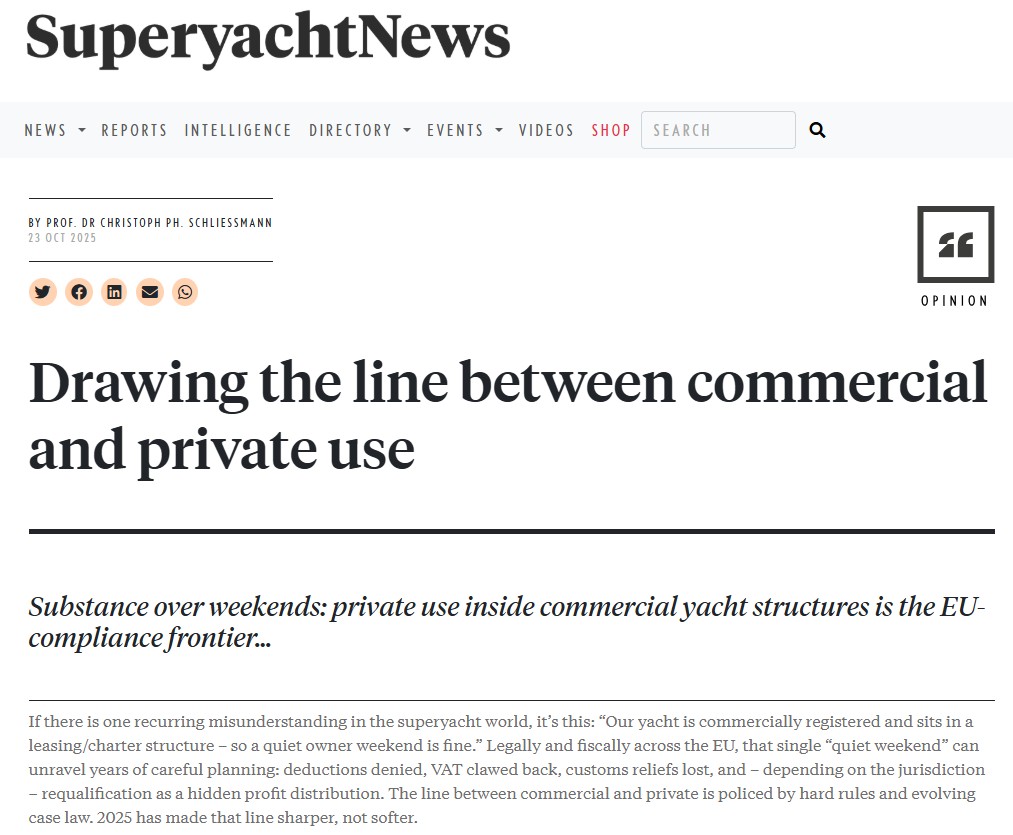 Wenn es in der Welt der Superyachten ein wiederkehrendes Missverständnis gibt, dann ist es dieses: “Unsere Yacht ist kommerziell registriert und befindet sich in einer Leasing-/Charterstruktur – ein ruhiges Eignerwochenende ist also in Ordnung.” In rechtlicher und steuerlicher Hinsicht kann ein einziges “ruhiges Wochenende” in der gesamten EU jahrelange sorgfältige Planung zunichte machen…